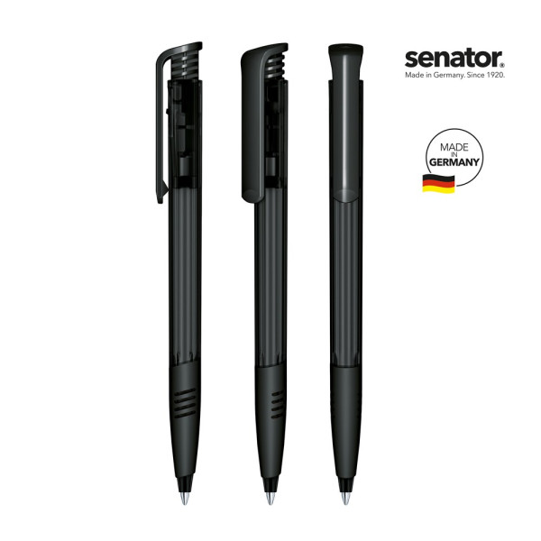 senator® Super Hit Clear SG balpen, Glanzend transparante houder, softgrip in de kleur van de houder, polished clip, senator® magic flow X20 vulling (1.0 mm), Schrijfkleur: blauw of zwart