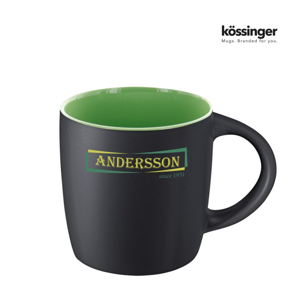 Mok Ennia inside wit-oranje, de uiterst populaire keramische promotiemok, maakt indruk met zijn moderne, heldere vorm. Het matzwarte buitenglazuur is een bijzondere blikvanger. Naast de praktische waarde en lange levensduur van het artikel, biedt de Ennia serie met verschillende binnen- en buitenkleuren ook de mogelijkheid om verzamelbekers te ontwerpen.