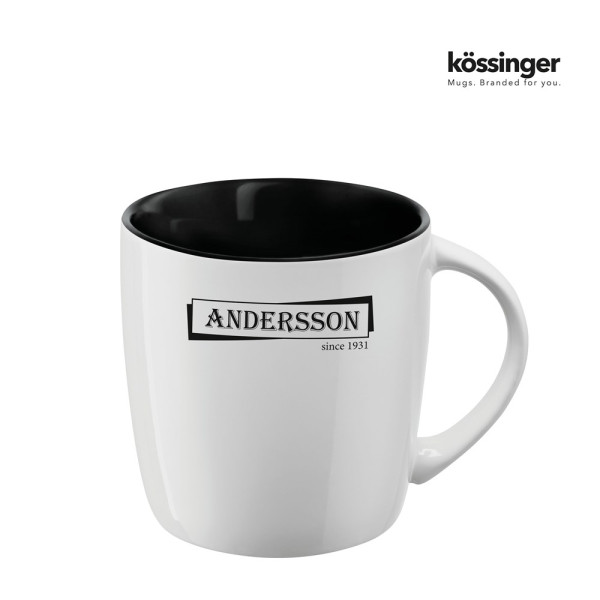 Mok Ennia inside wit-oranje, de uiterst populaire keramische promotiemok, maakt indruk met zijn moderne, heldere vorm. Het matzwarte buitenglazuur is een bijzondere blikvanger. Naast de praktische waarde en lange levensduur van het artikel, biedt de Ennia serie met verschillende binnen- en buitenkleuren ook de mogelijkheid om verzamelbekers te ontwerpen.