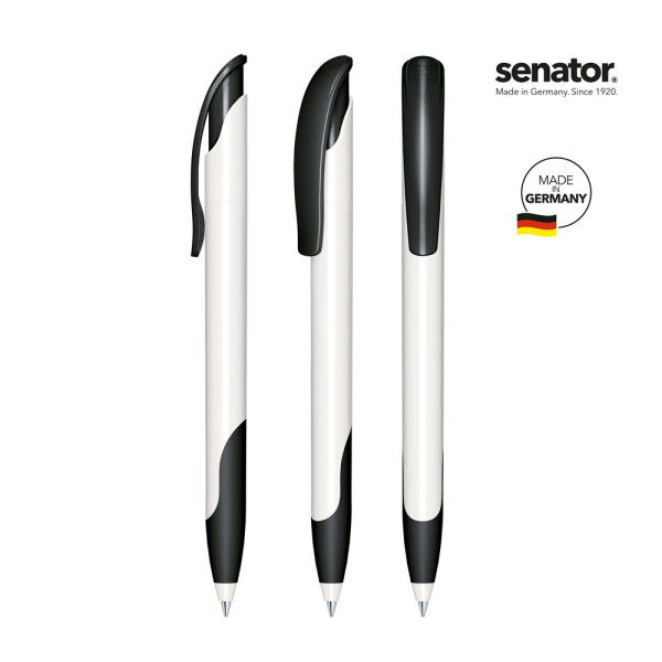 senator® Challenger Polished Basic SG balpen, Polished witte houder, gekleurde polished clip en softgrip, senator® magic flow G2 vulling (1.0 mm), Schrijfkleur: blauw of zwart