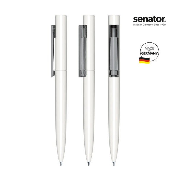 senator® Headliner Polished Draaibalpen, Balpen met draaimechaniek, Glanzend polished houder en bovenstuk met transparante of polished witte clip, senator® magic flow G2 vulling (1.0 mm), Schrijfkleur: blauw of zwart