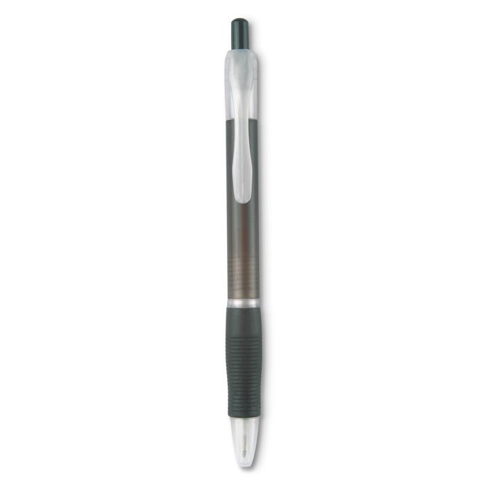 ABS balpen met drukmechanisme en rubber grip. Zwarte inkt.