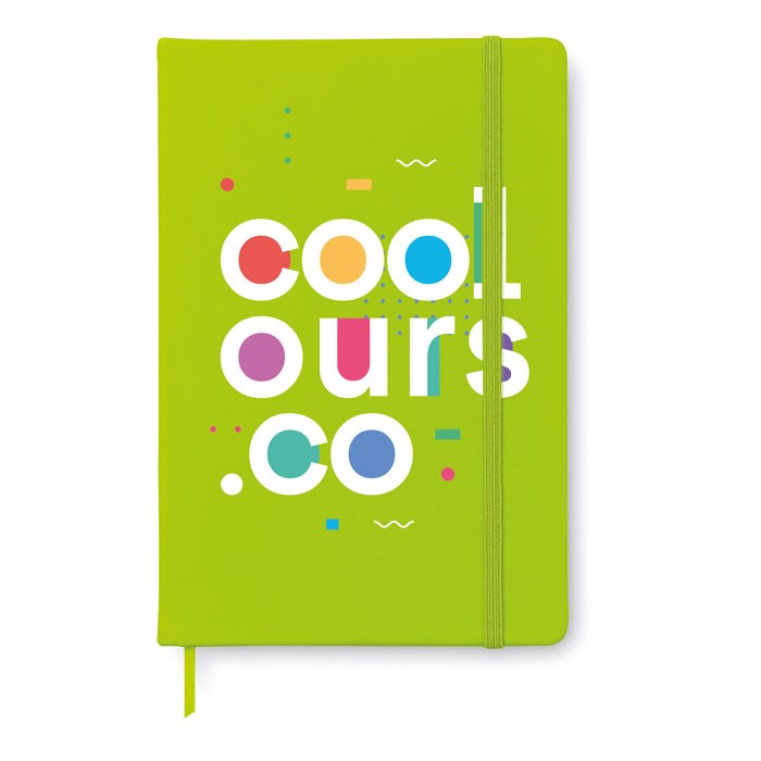 A6 notitieboekje met PU cover en 192 pagina's (96 vellen) gelinieerd papier. Inclusief elastieken sluiting en bijpassend gekleurd lint. FSC®-certified | FSC MIX CREDIT, P7.1, FSC-C213206