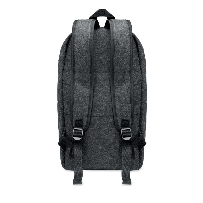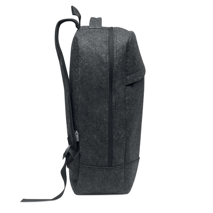 13-inch laptoprugzak van RPET-vilt met gewatteerde schouderband, riem en binenin een hoofdcompartiment. Afsluitbaar vak met rits aan de binnenkant. Trolleyhouder aan de achterzijde.