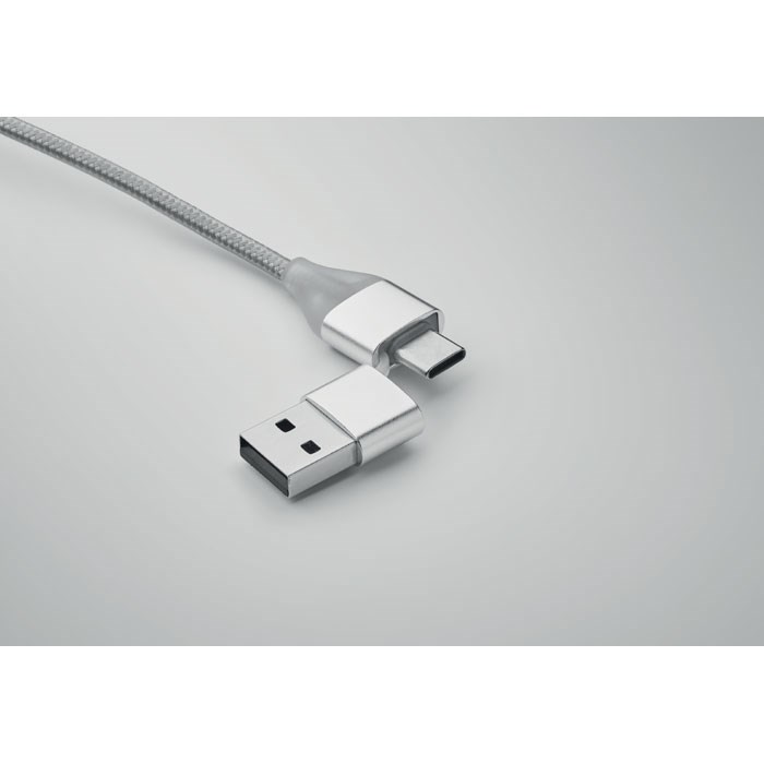 Sleutelhanger met oplaadkabel met ingang 2-in-1 type-C & type-A en micro-B (2 in 1 pin) en type C-uitgang.