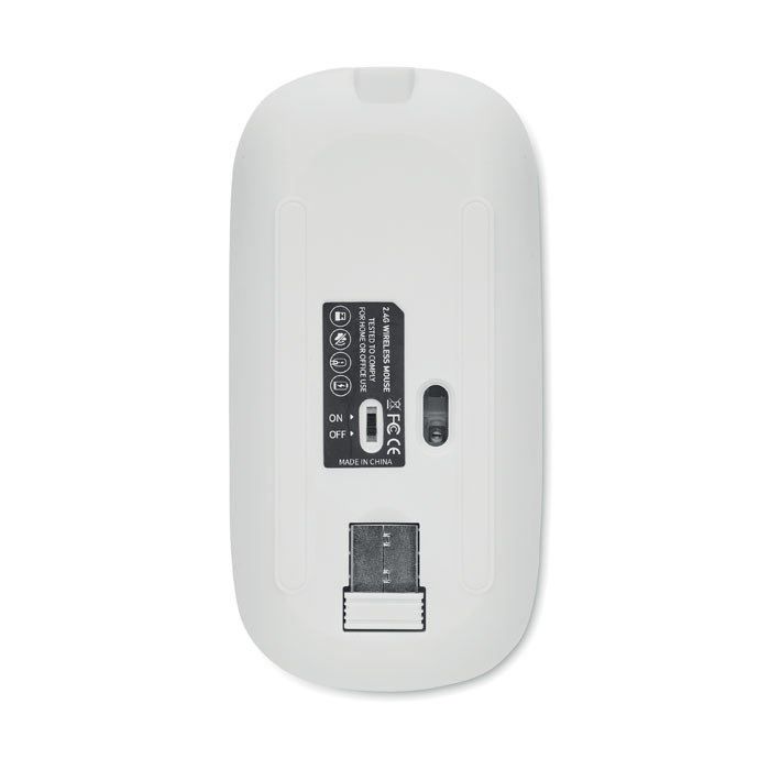Draadloze optische muis van gerecycled ABS met oplaadbare USB-batterij van 500 mAh.