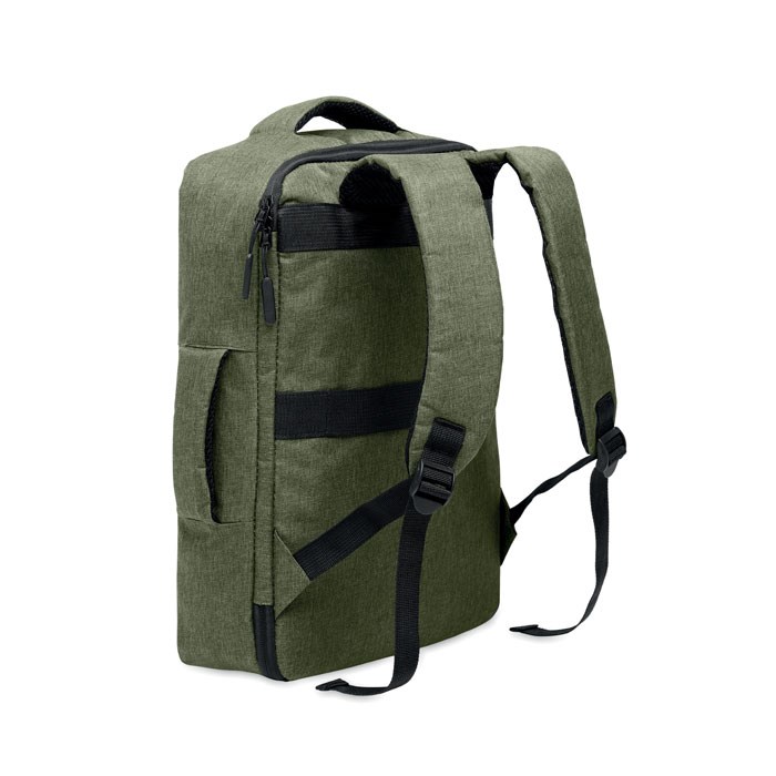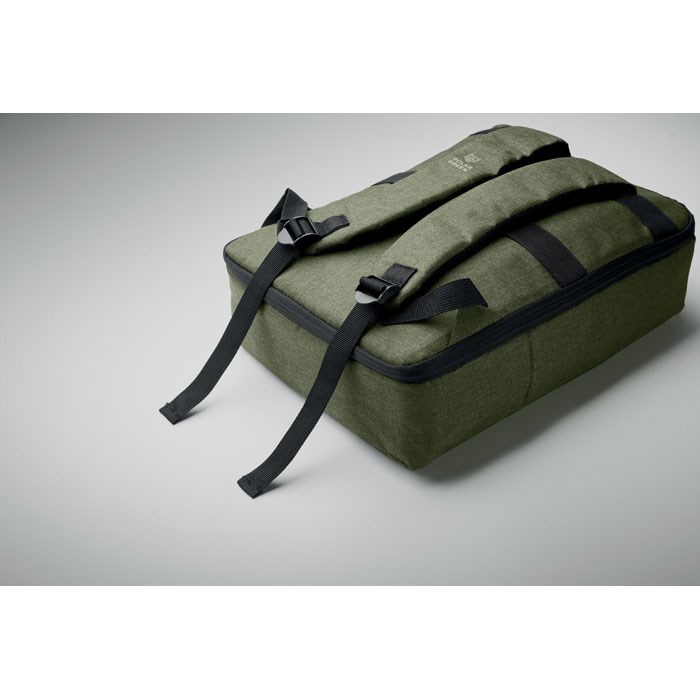 Smalle 15 inch laptoprugzak van 300D RPET en 210D RPET voering. Met laptopvak, 2 insteekvakken, 2 pennenvakken en 2 gevoerde handgrepen. Zacht gevoerde rug- en schouderbanden. De ritssluiting zit aan 3 zijden van de rugzak. Trolleyhouder op achterkant.