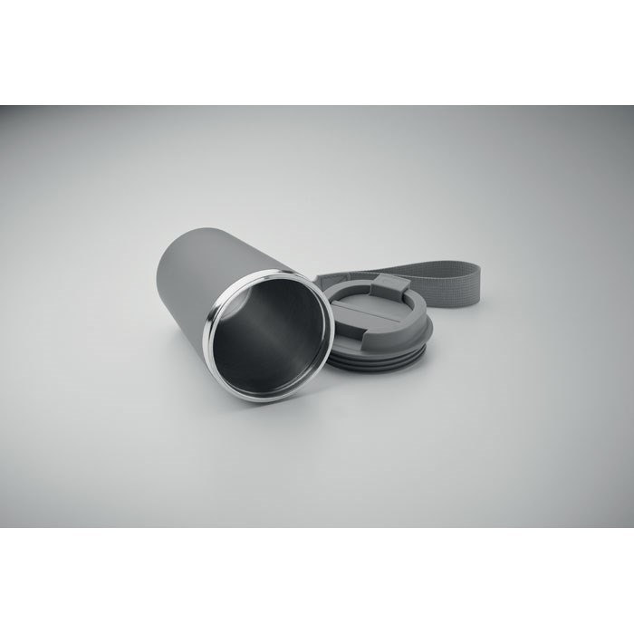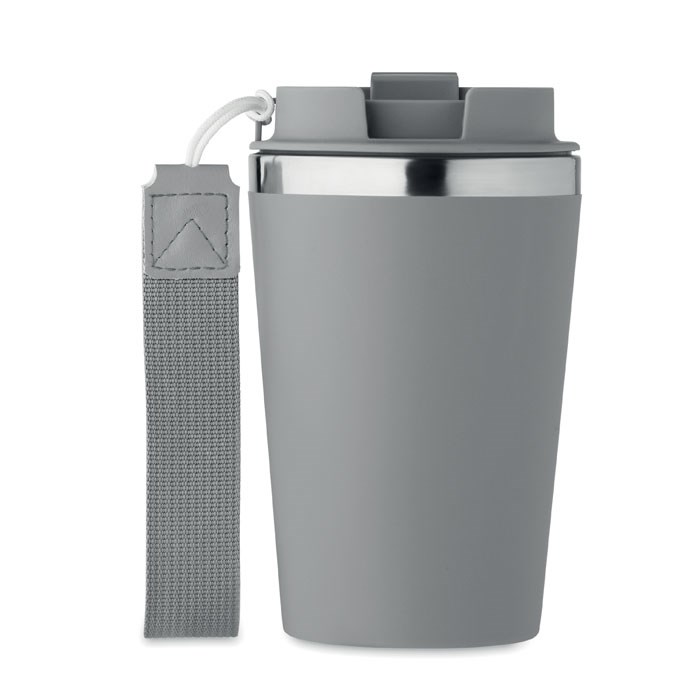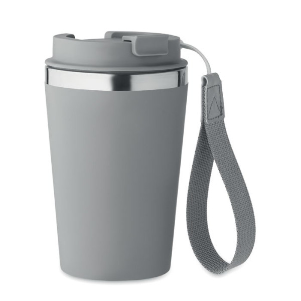 Dubbelwandige beker van gerecycled roestvrij staal (90% gerecycled roestvrij staal en 10% roestvrij staal) met PP buitenlaag met RPET polsband. Inhoud: 350ml.
