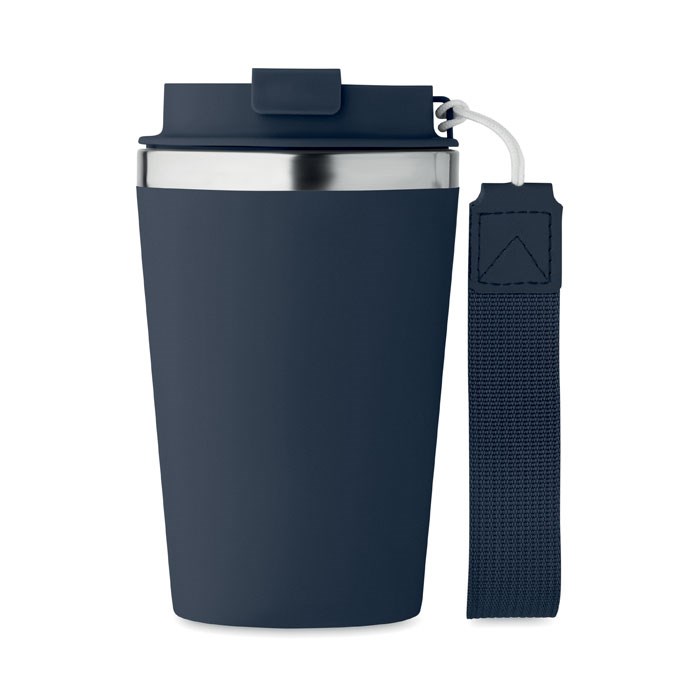 Dubbelwandige beker van gerecycled roestvrij staal (90% gerecycled roestvrij staal en 10% roestvrij staal) met PP buitenlaag met RPET polsband. Inhoud: 350ml.
