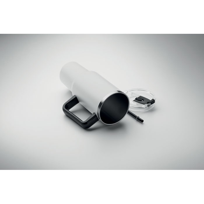 Gerecyclede roestvrijstalen dubbelwandige beker met rietjesdeksel inclusief PE rietje. Inhoud 1200 ml. (90% gerecycled roestvrij staal en 10% roestvrij staal).