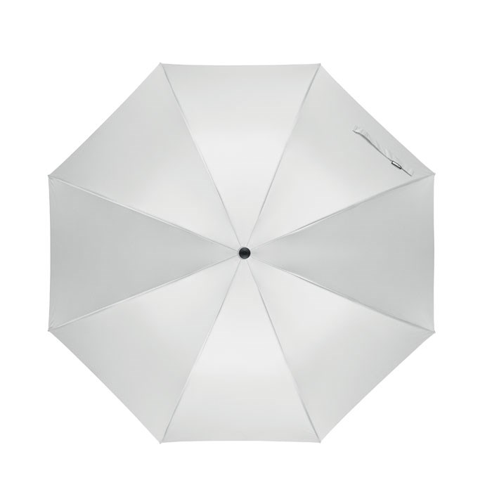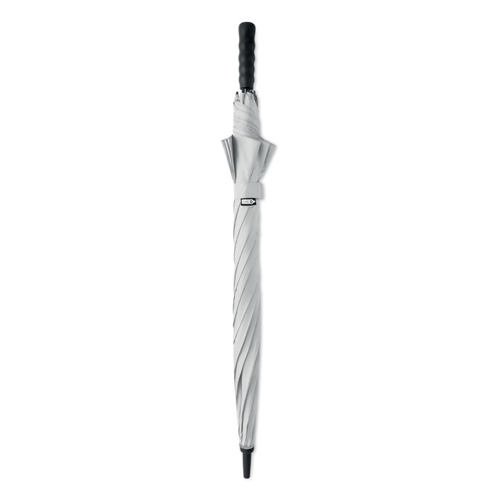 27 inch auto-open windbestendige paraplu in 190T RPET-pongee. Glasvezel schacht en baleinen. Tarwestro en gerecycled ABS handvat. Kunststof uiteinden en top.