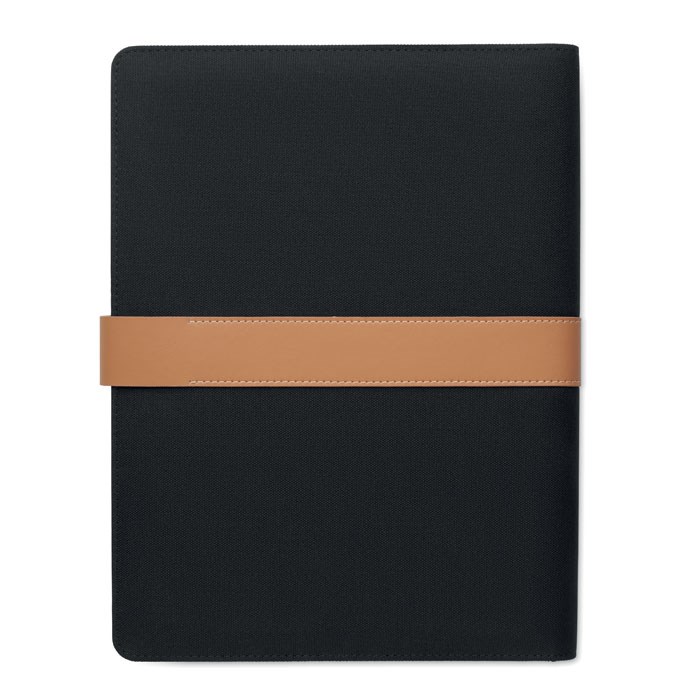 A4 conferentiemap in RPET met kunstlederen details. Voor zien van een vervangbaar A4-notitieblok...meer