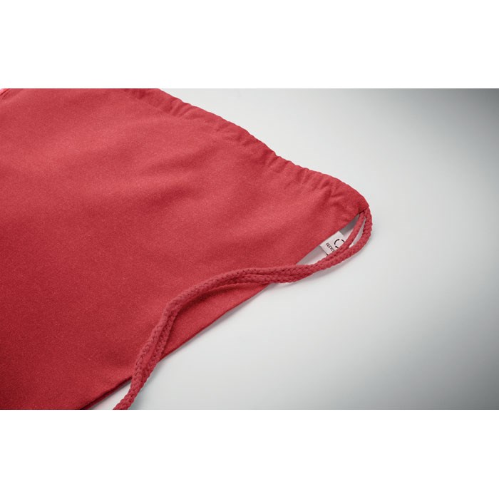 Gerecycled trekkoord rugzak van pre-consumer katoen (70% gerecycled katoen en 30% RPET) met lange hengsels. 140 gr/m². Dit artikel kan krimpen na het afdrukken.
