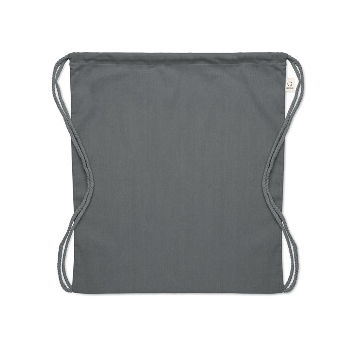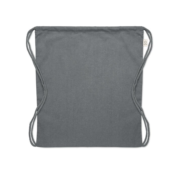 Gerecycled trekkoord rugzak van pre-consumer katoen (70% gerecycled katoen en 30% RPET) met lange hengsels. 140 gr/m². Dit artikel kan krimpen na het afdrukken.