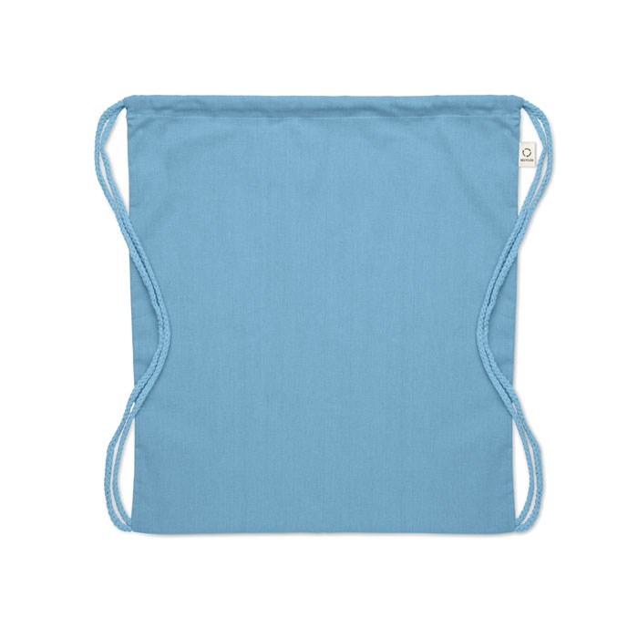 Gerecycled trekkoord rugzak van pre-consumer katoen (70% gerecycled katoen en 30% RPET) met lange hengsels. 140 gr/m². Dit artikel kan krimpen na het afdrukken.