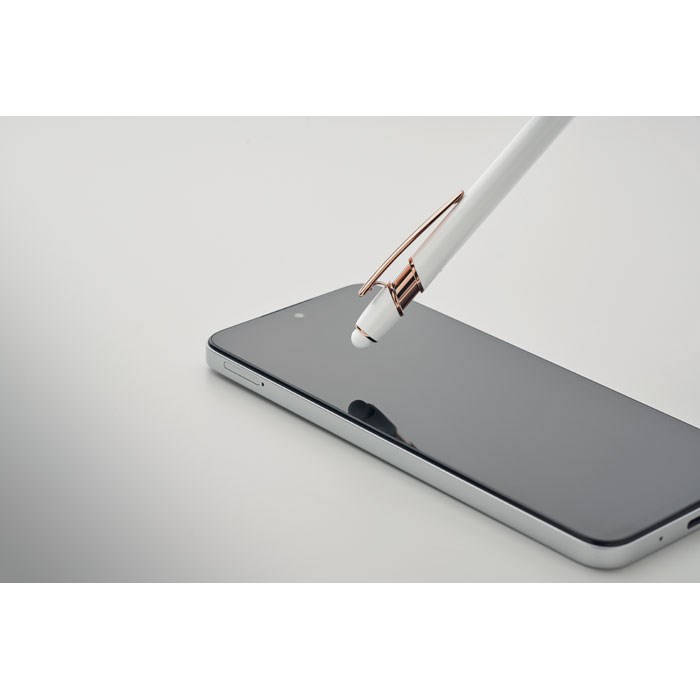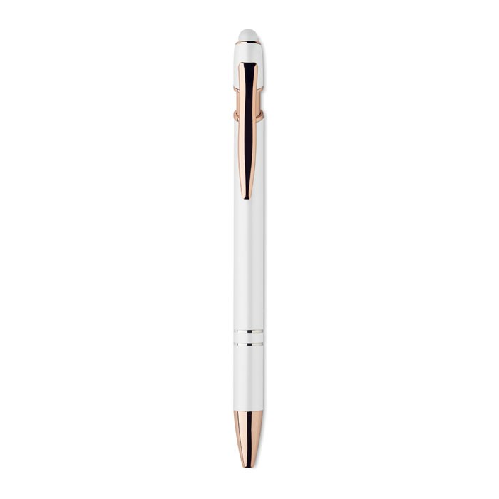 Stylus balpen van gerecycled aluminium met roségouden details. Blauwe inkt.meer