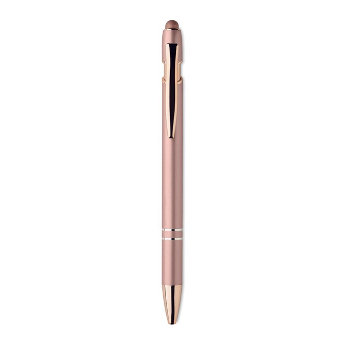 Stylus balpen van gerecycled aluminium met roségouden details. Blauwe inkt.