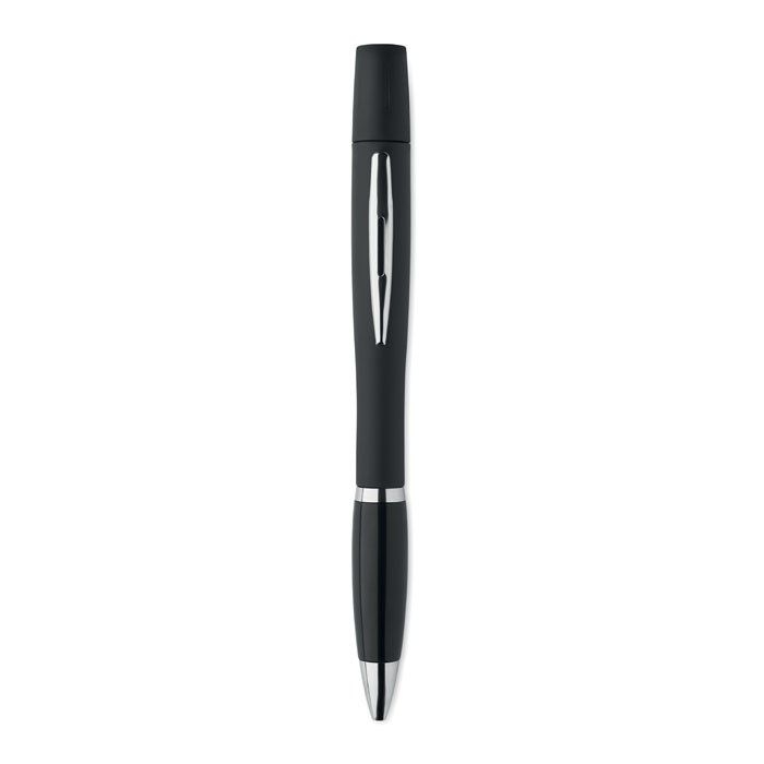 Pen met TWS reinigingsset. True Wireless Stereo (TWS) oordopjesreinigingsset: metalen penpunt, sponsje en borsteltje. Blauwe inkt.