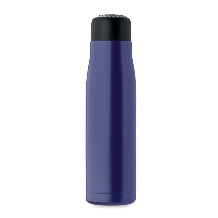 Dubbelwandige vacuüm isolerende fles van gerecycled roestvrij staal (90% gerecycled roestvrij staal en 10% roestvrij staal) met geïntegreerde draaglus op PP-deksel. Lekvrij. Inhoud: 500ml.