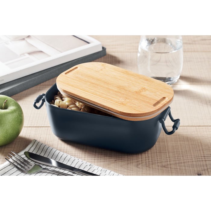 PP lunchbox met 2-zijdige sluiting en bamboe deksel. Inhoud 700ml.