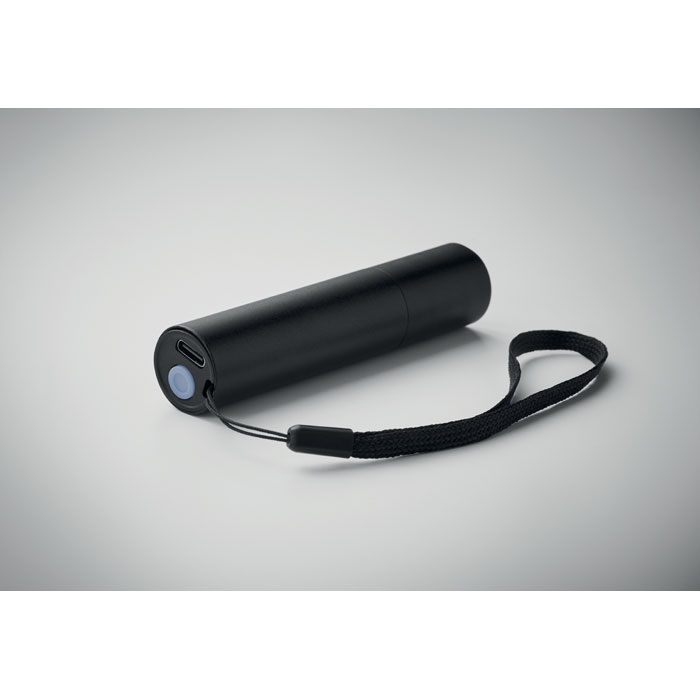 Aluminium oplaadbare zaklamp van 110 lumen met 3 lichtstanden en in-/uitzoomfunctie. Inclusief ingebouwde oplaadbare batterij van 400 mAh en oplaadkabel.