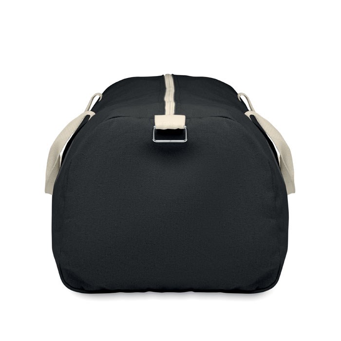 Reis-/ sporttas van gerecyclede stoffen (60% gerecycled katoen, 40% gerecycled polyester) in 320gr/m² met hengsels van natuurlijk katoen en een verstelbare en afneembare schouderriem.