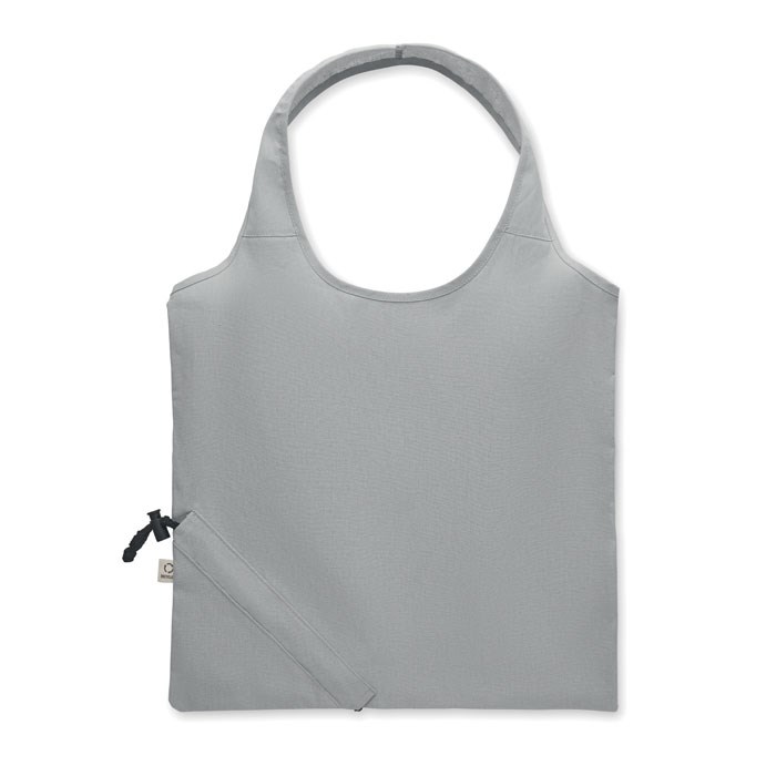 Opvouwbare boodschappentas van gerecycled pre-consumer katoen (70% gerecycled katoen en 30% RPET). 140gr/m². Dit artikel kan krimpen na het bedrukken.