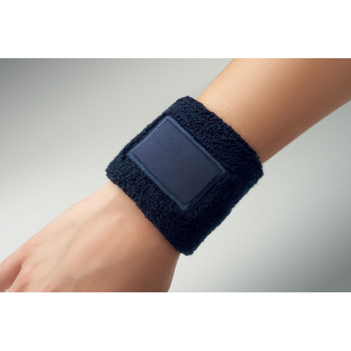 Polsbandje van polykatoen (79%katoen/13% elastaan/8% polyester) met katoenen patch voor de bedrukking.