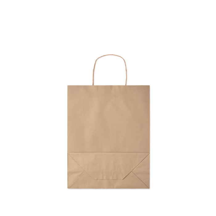 Medium papieren geschenktas. Een papieren zak is een geweldige manier om je cadeau in te presenteren. Het is ook handig om tijdens het winkelen spullen mee te dragen. 90 gr / m². Doordat het artikel is gemaakt van kraftpapier is de kleur niet helder wit maar PMS 5315U. FSC®-certified | FSC MIX, P5.3, FSC-C213206