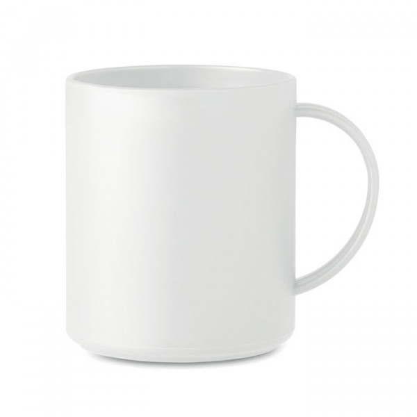 Herbruikbare mok van PP kunststof . Inhoud 300 ml.