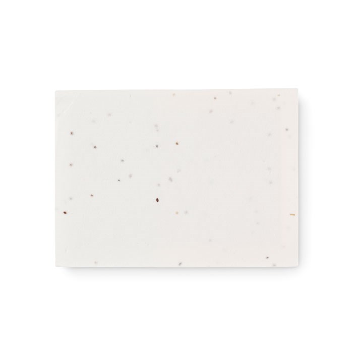 Sticky note memoblokje met een zachte kaft van zaadpapier. Groot geel memoblokje van gerecycled papier en 5 verschillende kleuren paginamarkers. Nadat je je gedachten op het laatste vel hebt genoteerd, plant je de kaft en zie je het uitgroeien tot een prachtig veld met rode klaprozen.