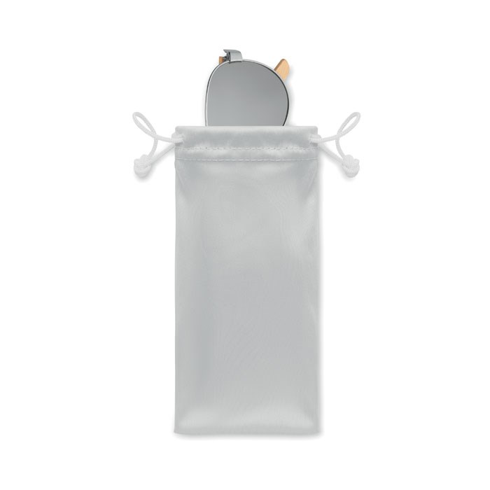 Zonnebril met bamboe pootjes en gekleurde spiegelende lenzen met UV400 protectie in microvezel...meer