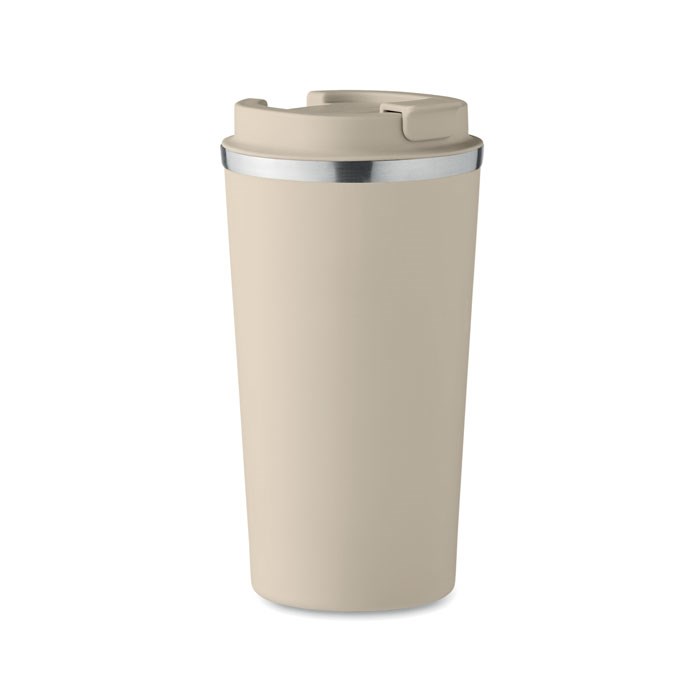 Dubbelwandige beker van gerecycled roestvrij staal (90% gerecycled roestvrij staal en 10% roestvrij staal) met PP deksel. Inhoud: 510ml. Lekvrij.