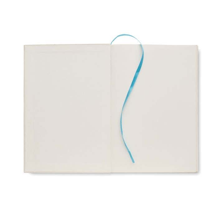 A5 notitieboekje met harde kaft gemaakt van 70% gerecycled melkpak en 30% gerecycled papier met 160 gelinieerde pagina's (80 vel 80 grams). Ingebonden. Elastische sluitingsband, bladwijzer met lint.