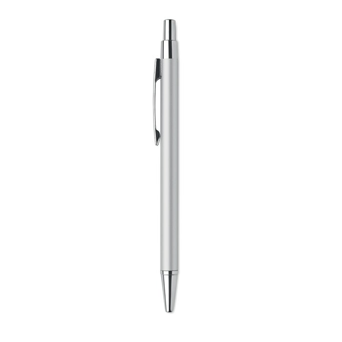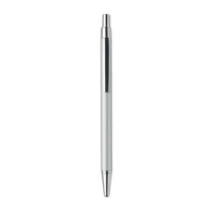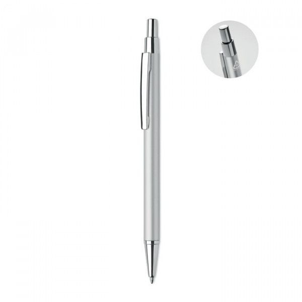 Balpen met drukknop in gerecycled aluminium. Blauwe inkt.meer