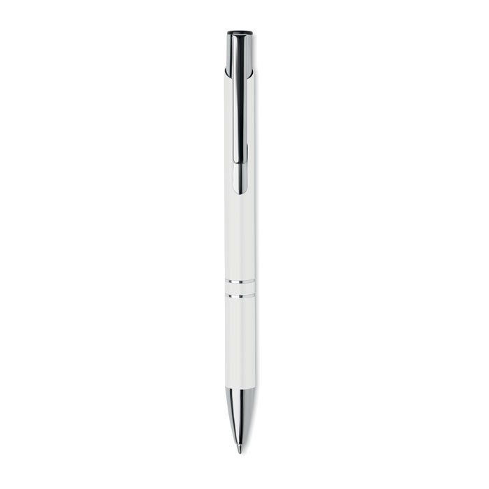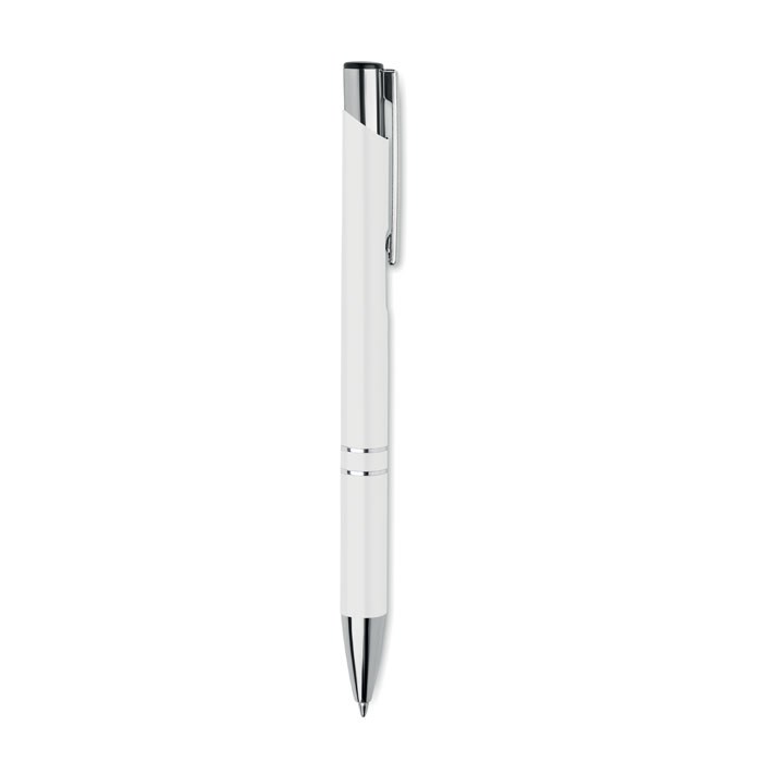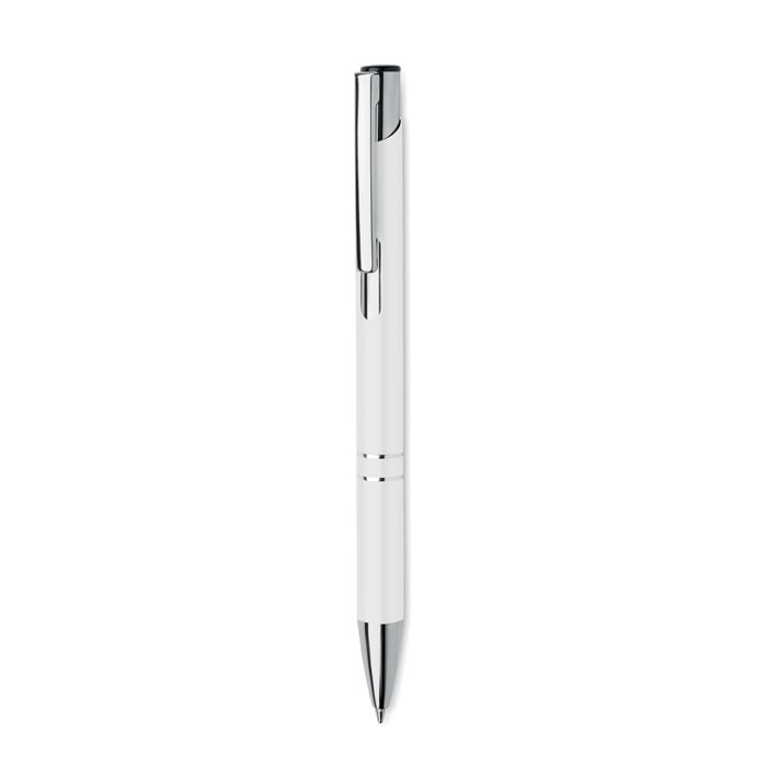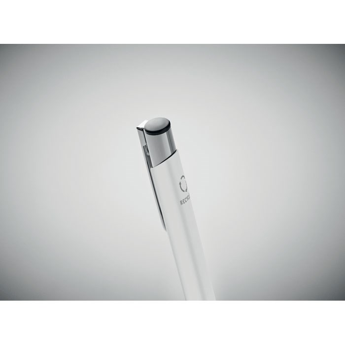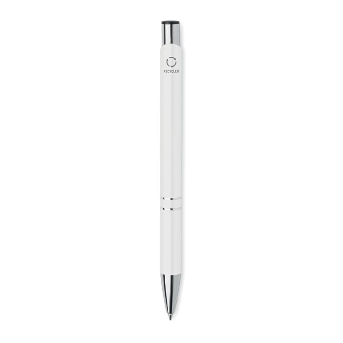 Balpen met drukknop in gerecycled aluminium. Blauwe inkt.meer