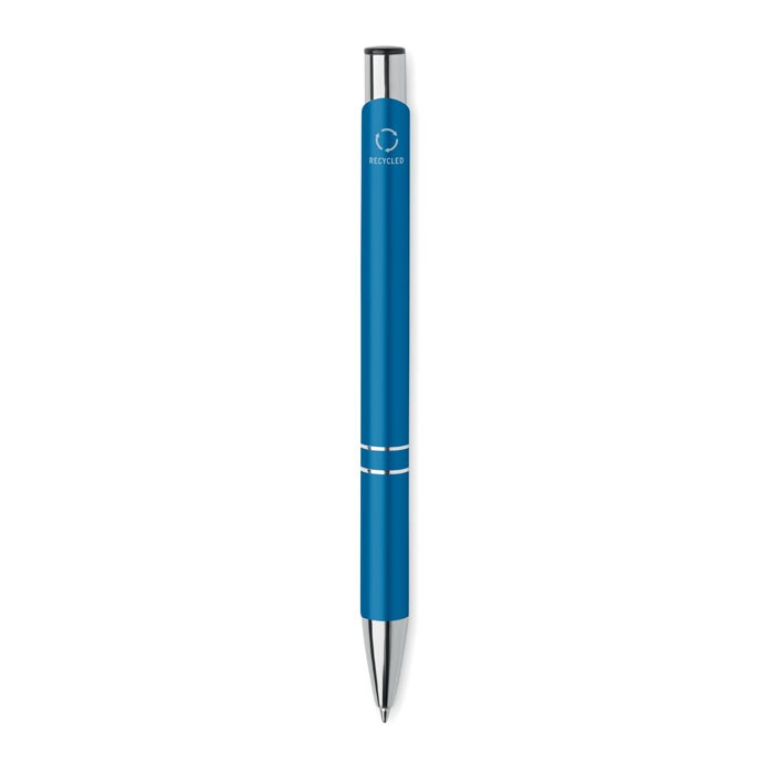Balpen met drukknop in gerecycled aluminium. Blauwe inkt.