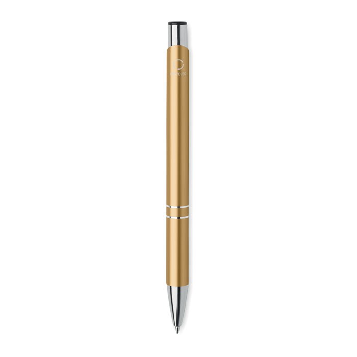 Balpen met drukknop in gerecycled aluminium. Blauwe inkt.meer