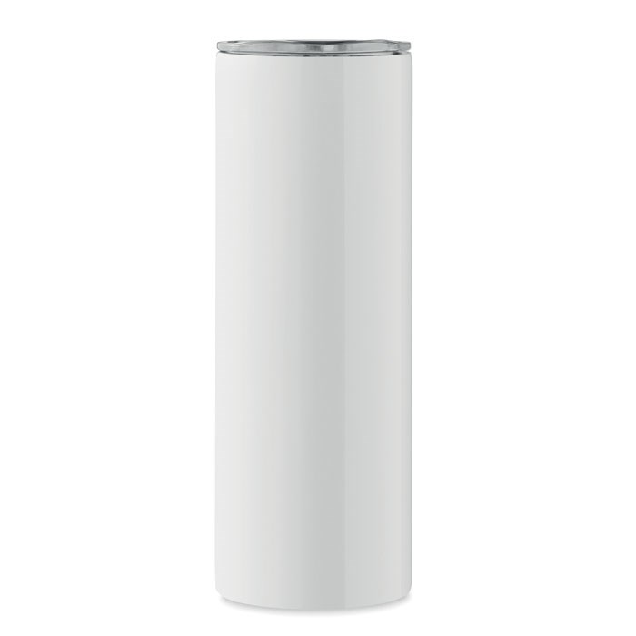 Dubbelwandige roestvrijstalen beker met PS dop en mondstukje, met speciale coating voor sublimatiebedrukking. Inhoud: 590 ml.