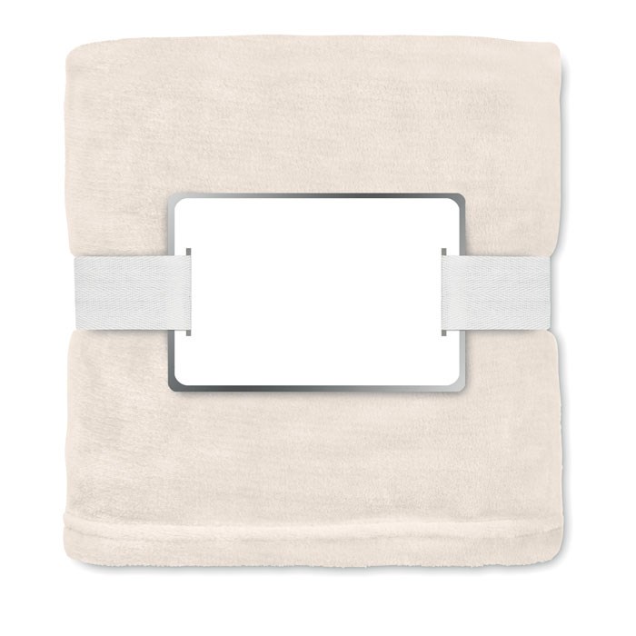 RPET flanellen fleece deken 280 gr/m² omwikkeld met lint en bedrukbare kaart.meer