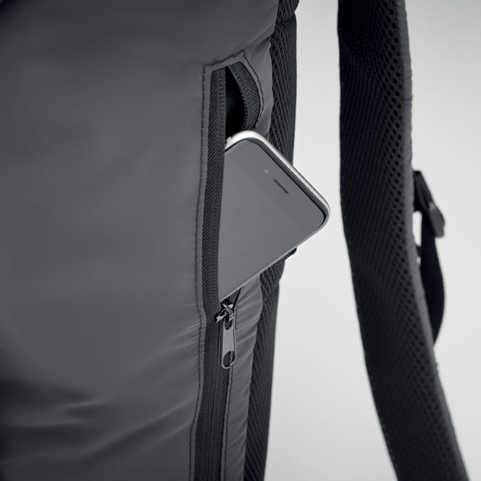 Outdoor rugzak van 190T polyester. Buitenzak met rits, gevoerde achterkant en binnenvoering met trekkoordsluiting. Een groot gewatteerd binnenvak voor een laptop. Waterafstotend.