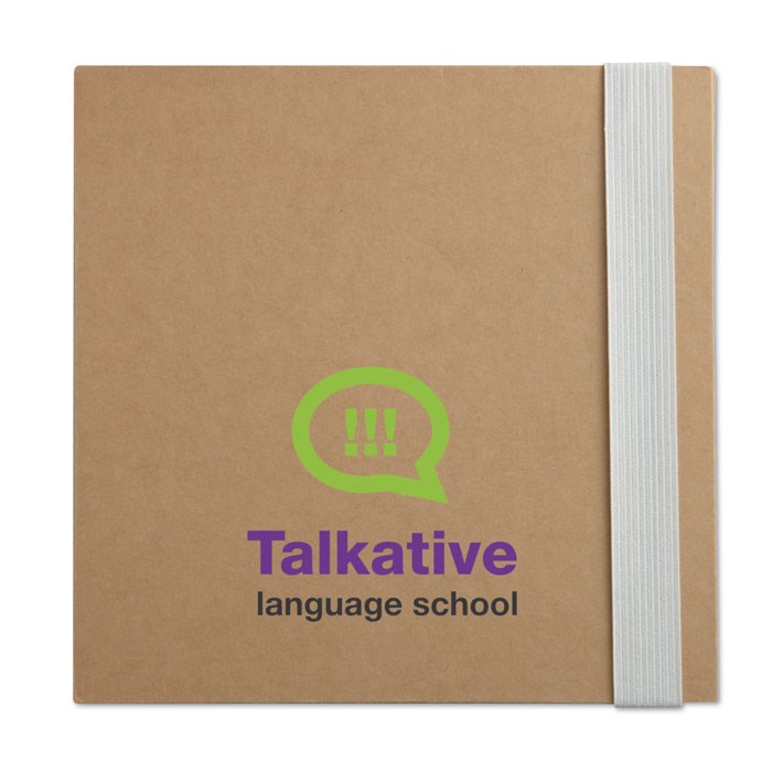 Gerecycled notitieboekje met plakbriefjes, een papieren pen en een blanco schrijfblok met 100 blanco vellen. FSC®-certified | FSC MIX, P7.1, FSC-C213206
