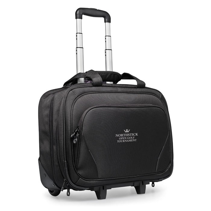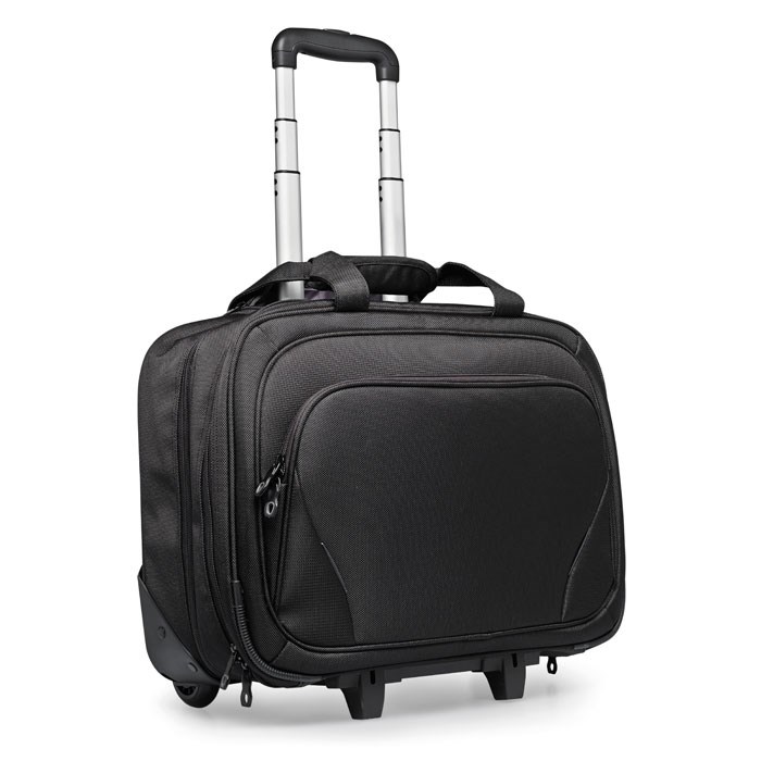 Business trolley met een 17 inch laptopvak en een 10 inch tabletvak, met daarbinnen diverse compartimenten. 1680D polyester.