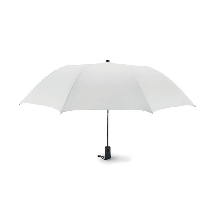 21 Inch paraplu van pongee. Metalen steel, baleinen en uiteinde. Rubberen ABS handvat. In 2 delen opvouwbaar. Inclusief bijpassende hoes. 190T polyester. Opent automatisch en sluit handmatig.