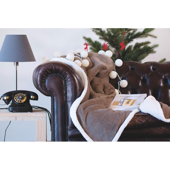 200 g/m² koraal fleece deken met polyester sherpa voering 220 g/m². Inclucief lint en bedrukbare kaart.