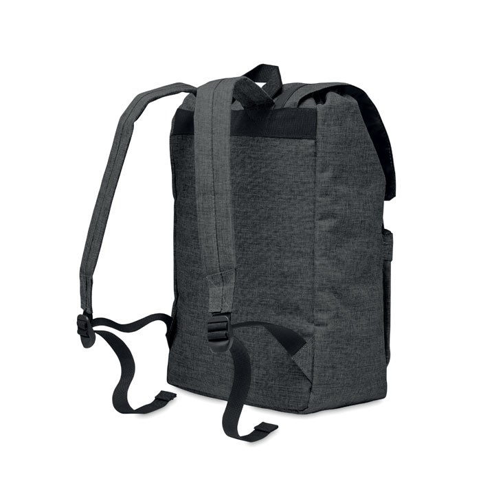 15 inch laptoprugtas van 2-tone polyester met 1 binnenvak voor 15 inch laptop en USB oplaadkabel. Inclusief magnetische sluiting en voorvak met ritssluiting. 600D polyester.
