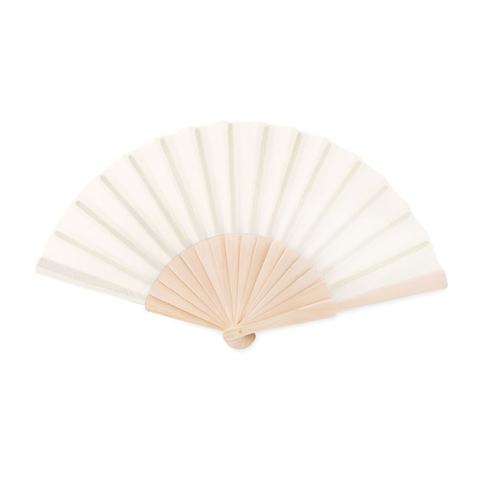 Handwaaier van hout en de stof van polyester.