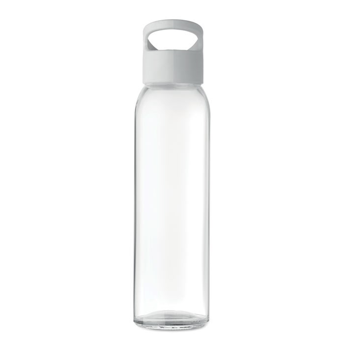 Glazen drinkfles met PP dop met handige opening voor makkelijk meenemen of bevestiging aan je tas. Inhoud 470 ml. Niet geschikt voor koolzuurhoudende dranken. Lekvrij.