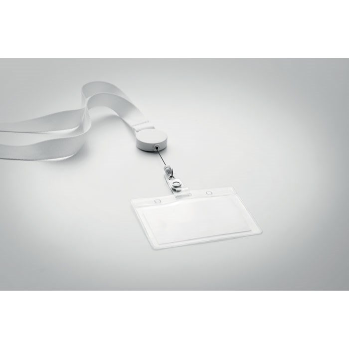 Polyester lanyard met uitrekbare badgehouder en safety break in de nek. Sublimatie bedrukking alleen geschikt op het witte item.