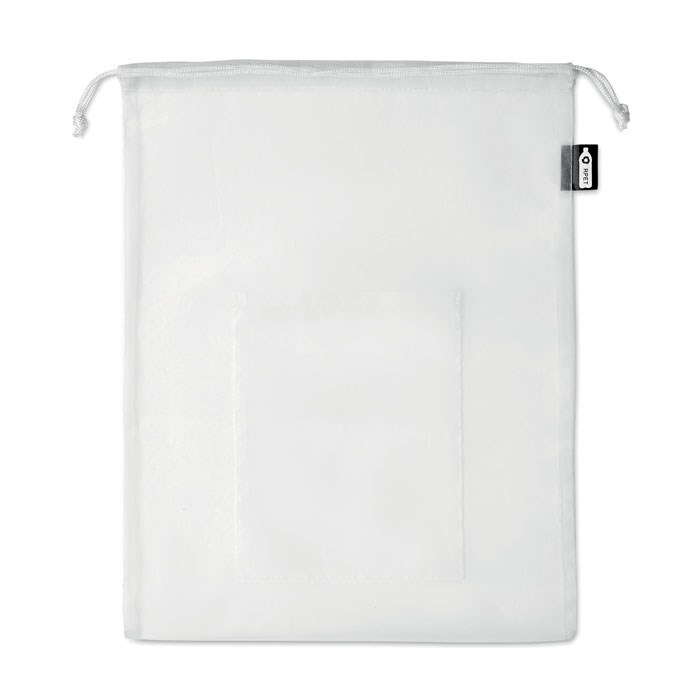 Voedseltas van RPET mesh met voorzakje en PP trekkoordsluiting.meer